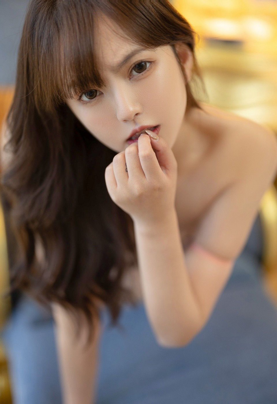 张思允NICE白上衣配蓝短裙半脱露蕾丝内衣超薄肉丝诱惑[22P]